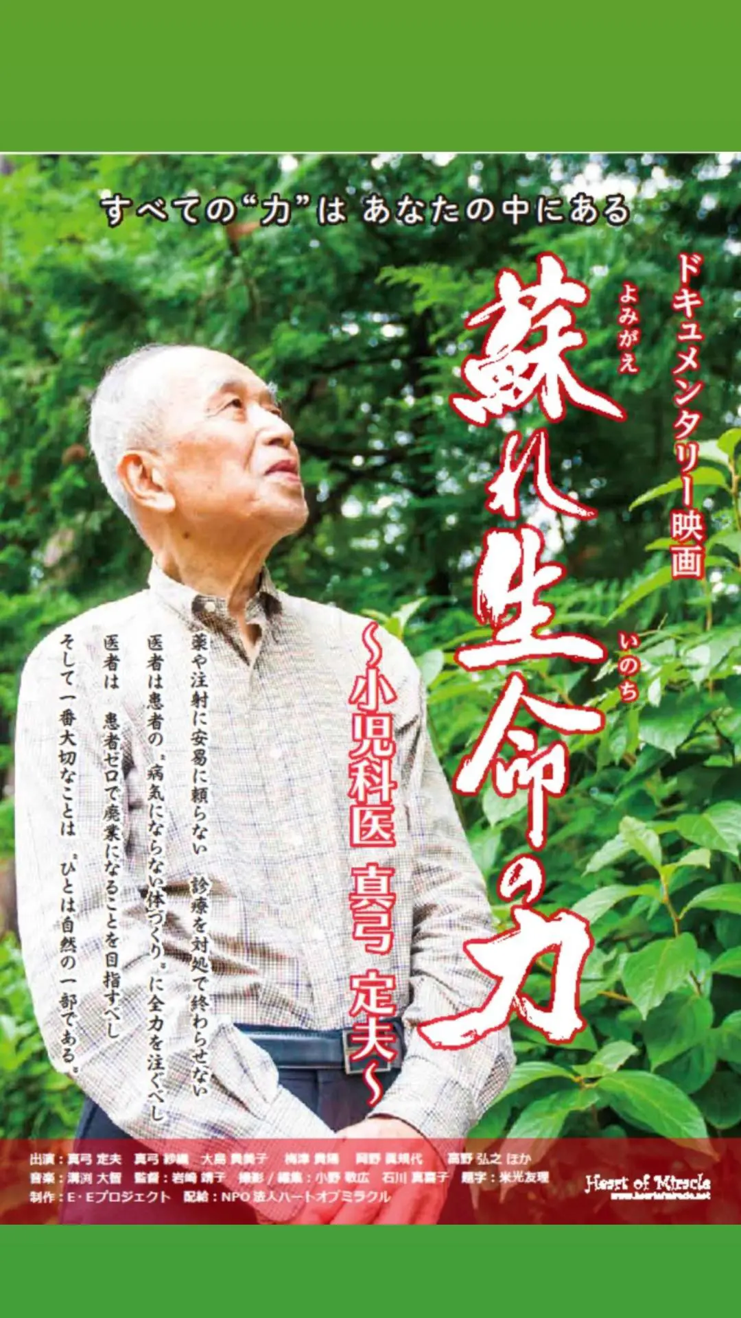 映画は、薬や注射に頼らず「自然治癒力」を大切にした小児科医・真弓定夫先生の90分のドキュメンタリー。