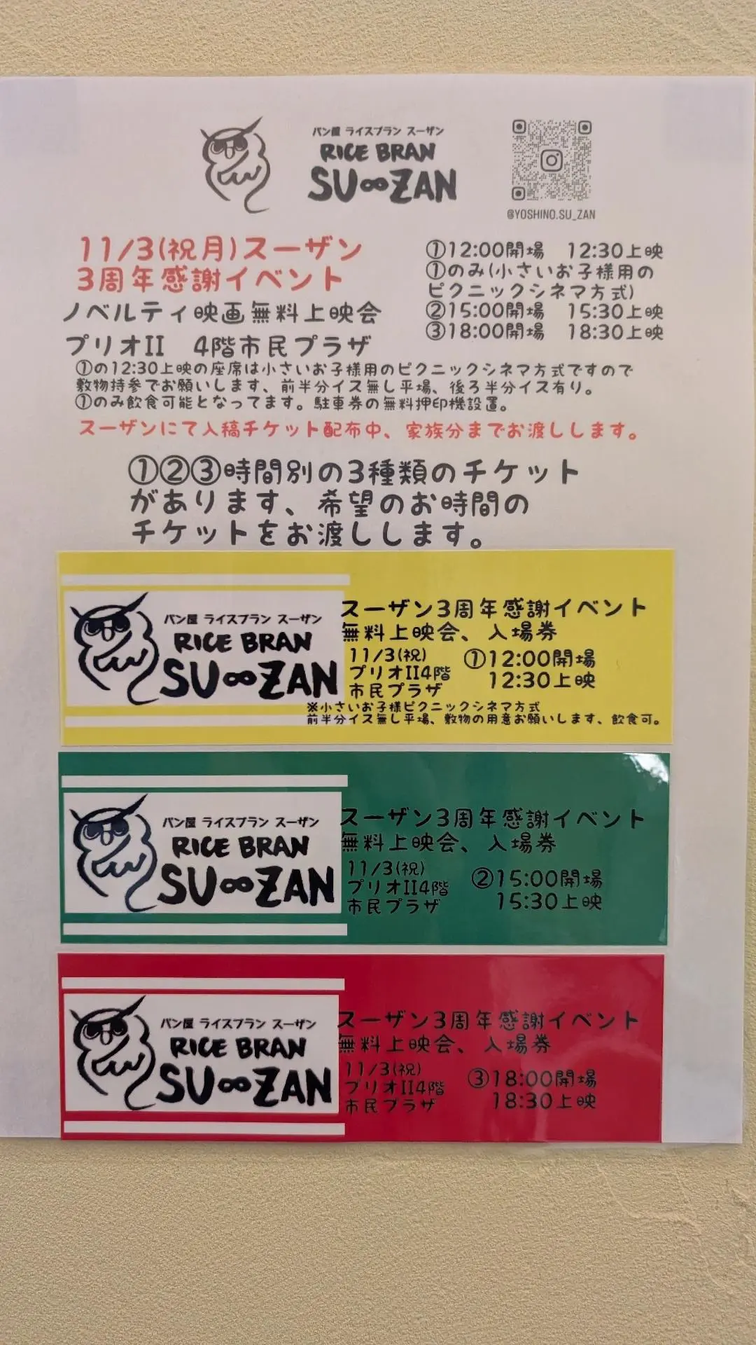 【豊川市】人気パン屋さん「スーザン」3周年感謝イベント!文化の日に映画「蘇れ 生命の力」無料上映会を開催!
