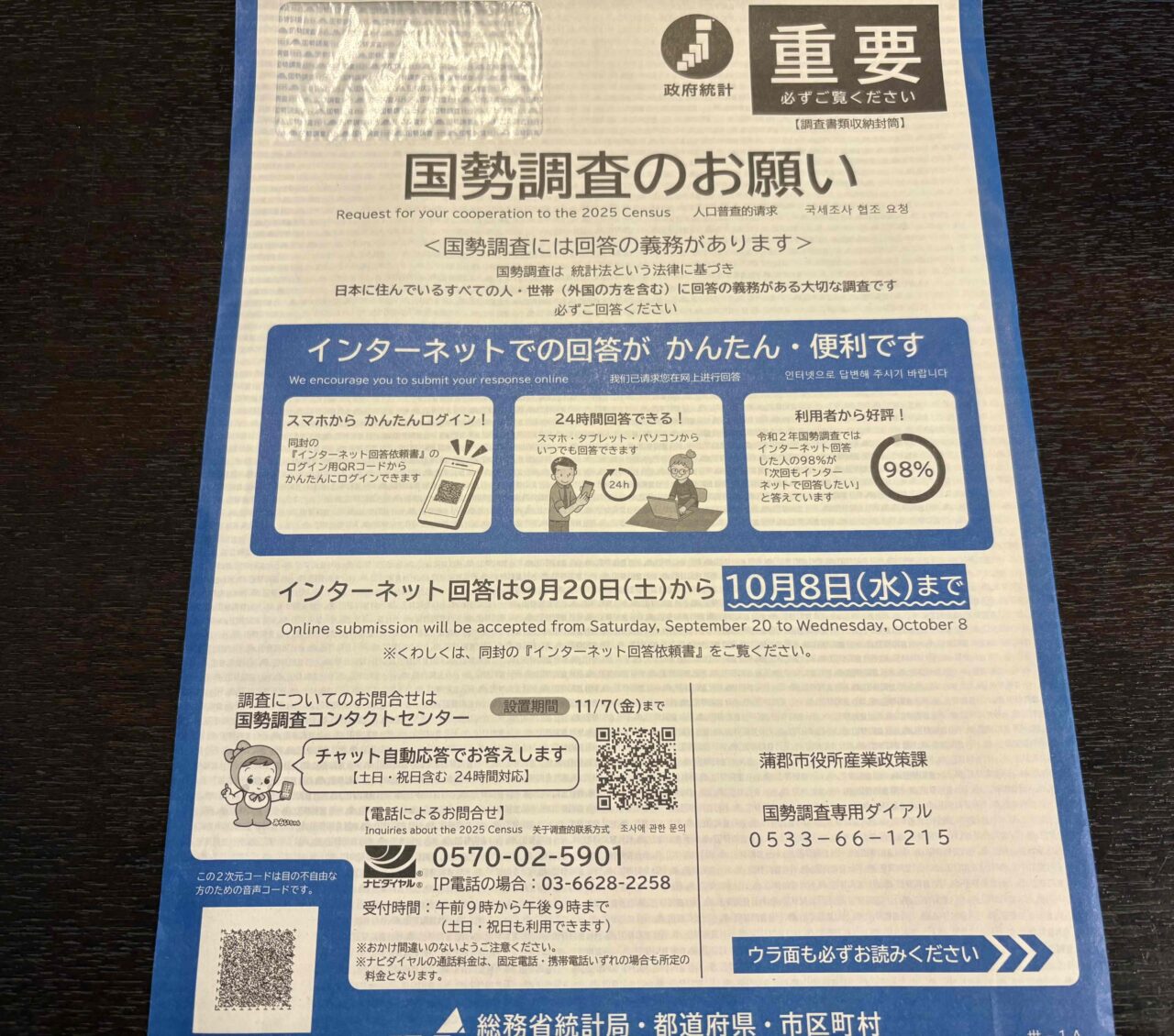 【豊川市】国勢調査はお済みですか? スマホで5分,サクッと回答できますよ♪回答期限は10月8日(水)まで!
