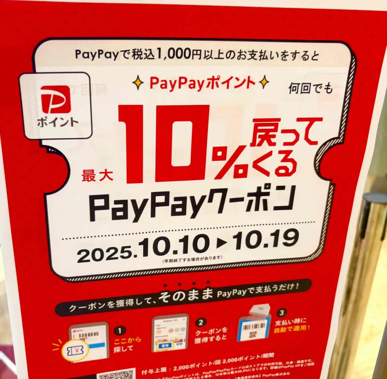 クーポンを獲得して、ペイペイでお支払いすると10%のポイント還元キャンペーンも実施中でした。