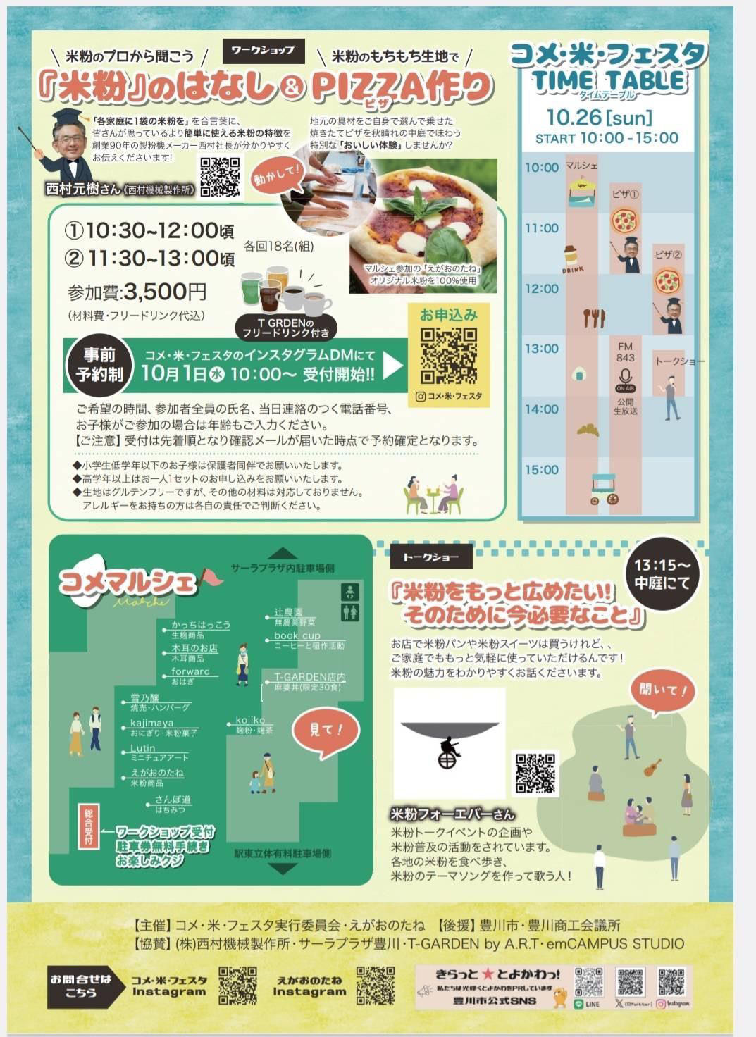 目玉は、地元の米粉100%を使った【ピザ作り体験ワークショップ】&【米粉のはなし】。