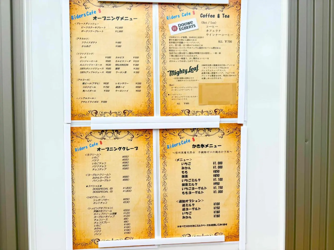 カフェの名前「Riders Cafe 8」は、ツーリング途中のライダーさんたちが気軽に立ち寄れる場所にしたいという想いから名づけられたそう。