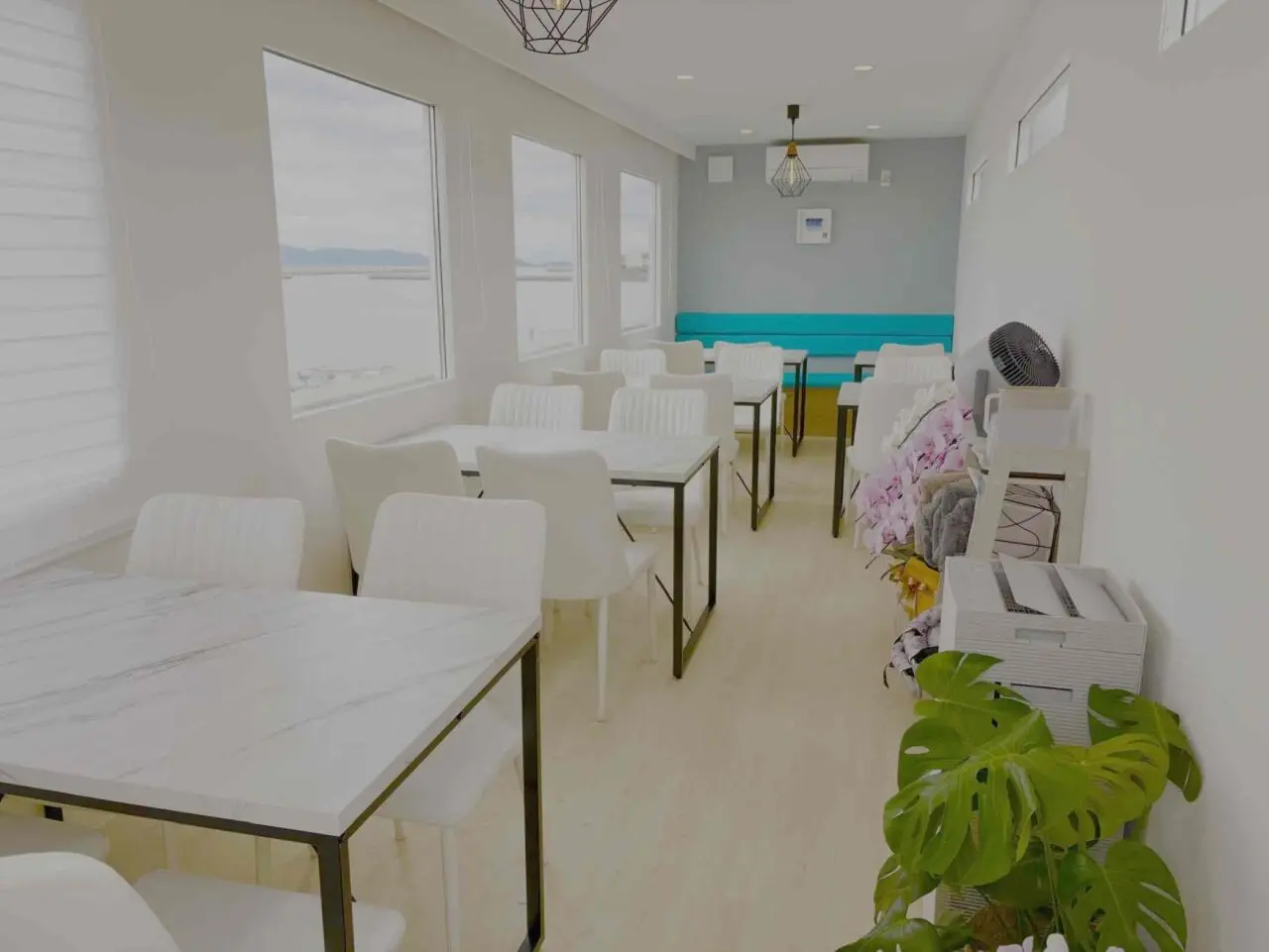 潮風を感じながらゆったり過ごせるお店は、どの席からも絶景が楽しめる開放的な空間です。