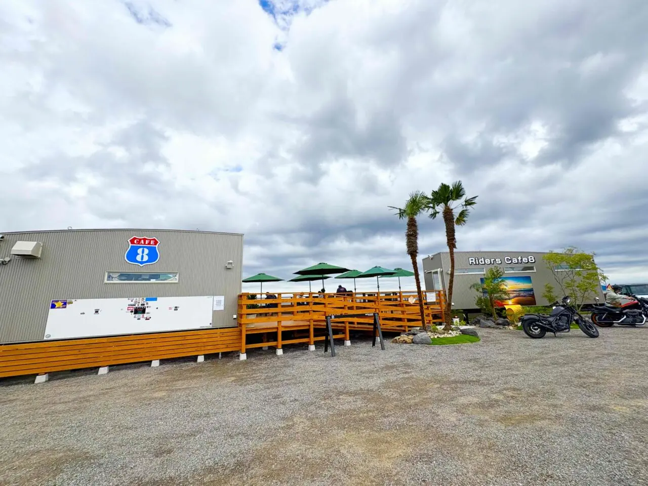海沿いをドライブしていると、思わず立ち寄りたくなるカフェ「Riders Cafe 8(ライダーズカフェ エイト)」。