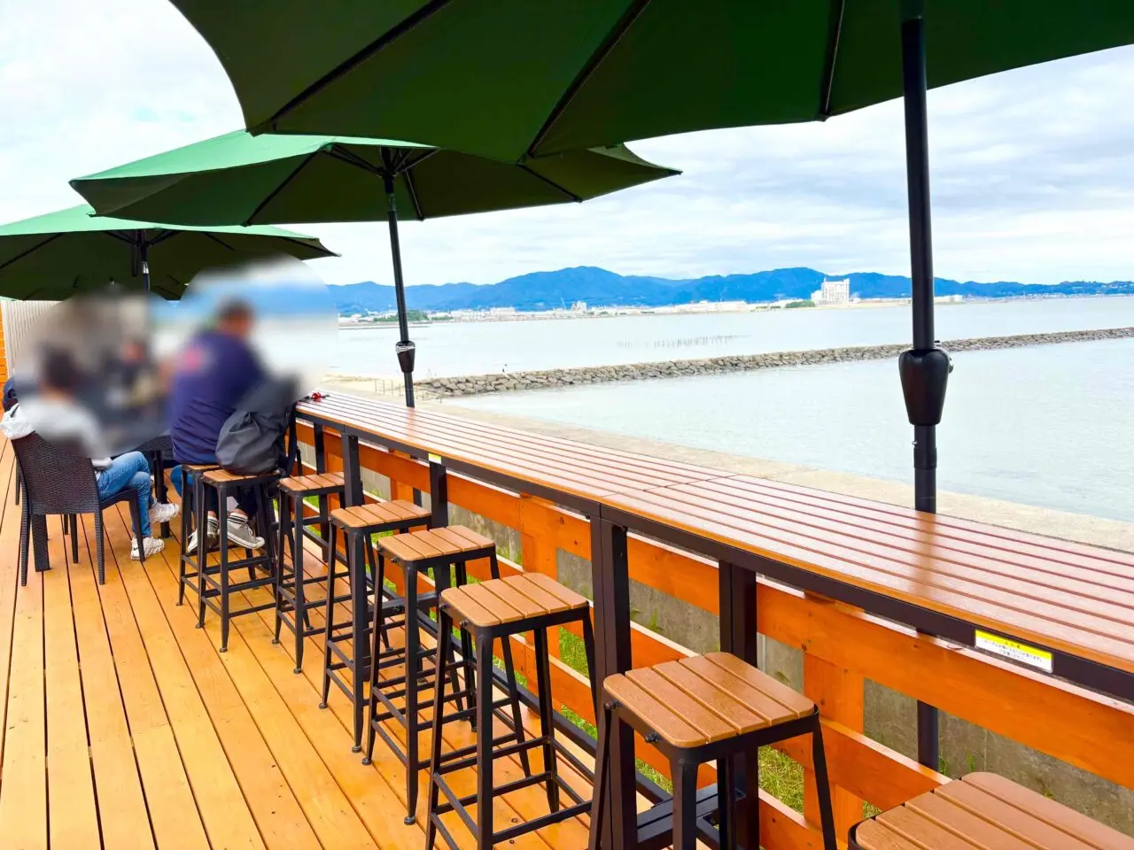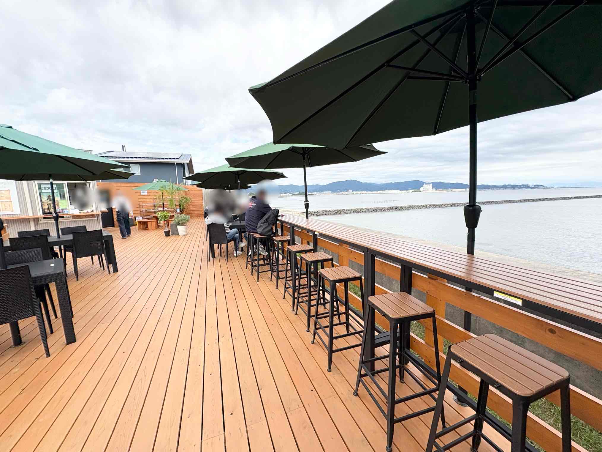 テラス席からは青い海が一望でき、まるでリゾート地に来たようなロケーション!