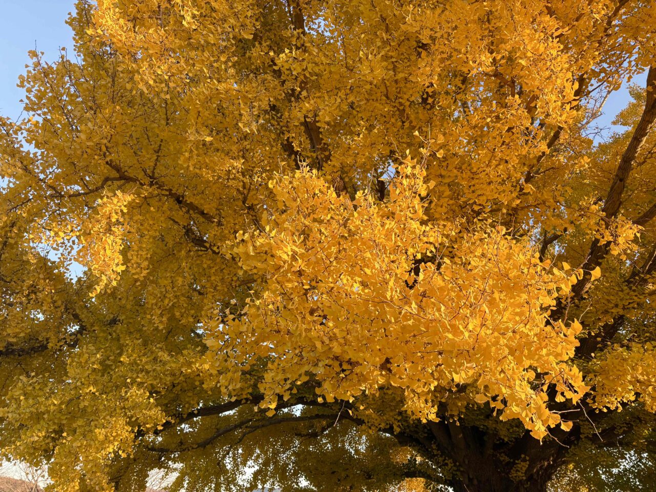 ちょうど今がまさに見頃で、木全体がふわっと明るく輝くような黄金色。