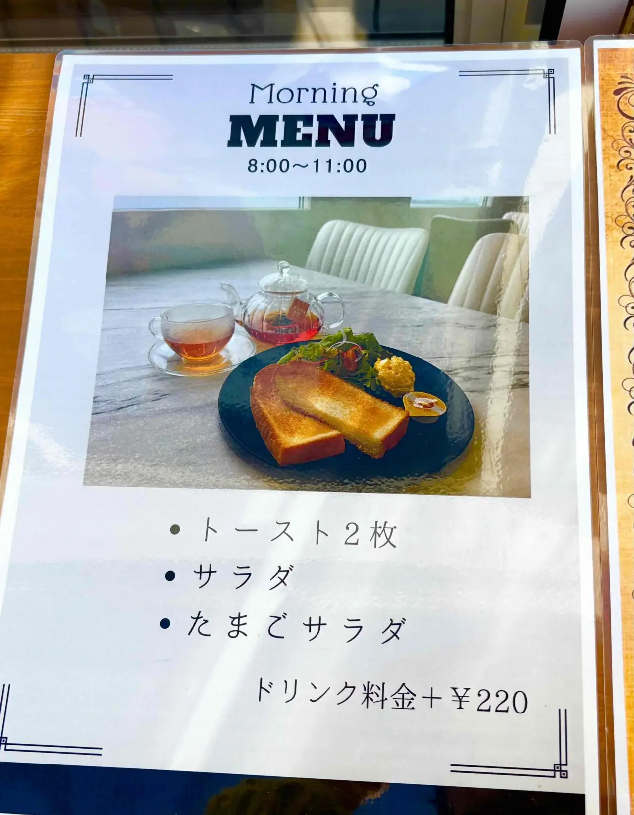 モーニングは、トースト2枚・サラダ・たまごサラダがセットになった、シンプルだけど満足感のある内容。