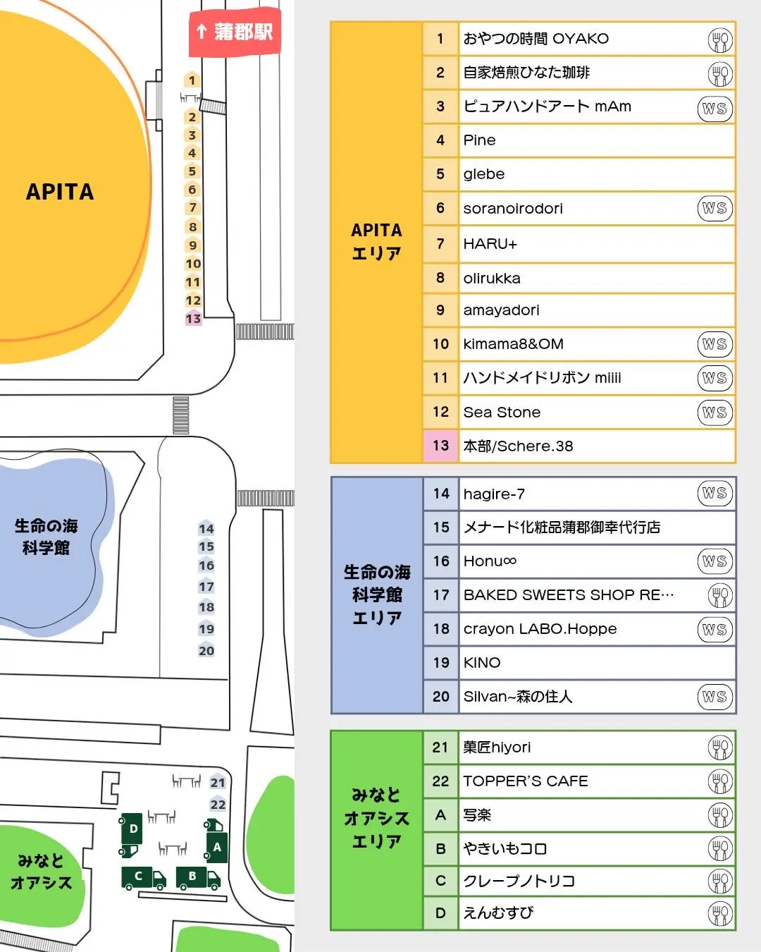 会場は アピタ蒲郡横の歩道〜生命の海科学館前周辺。