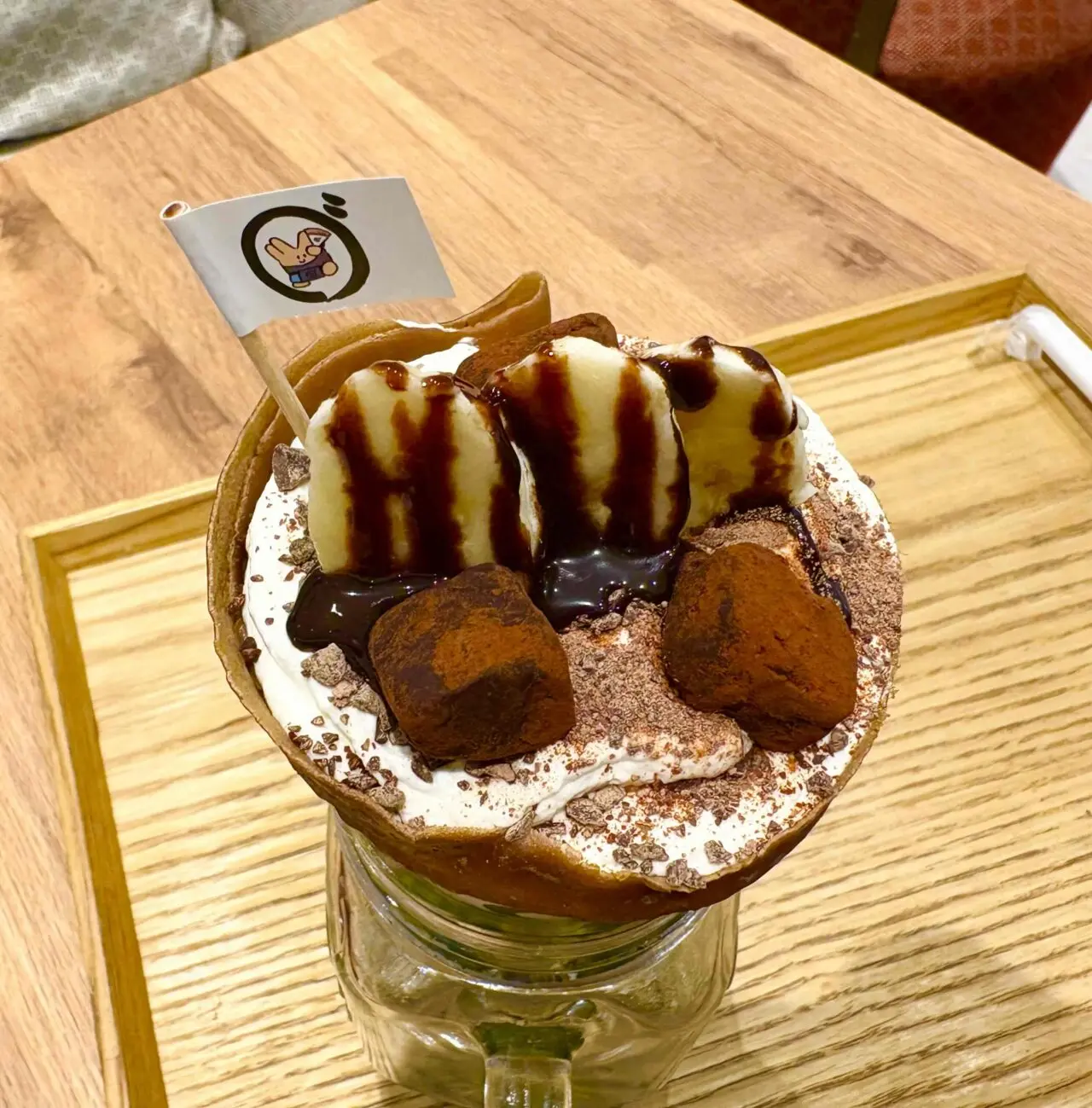 どれも美味しそうで迷いましたが、今回は“虫眼鏡チョコバナナクレープ”(1,350円)をチョイス!