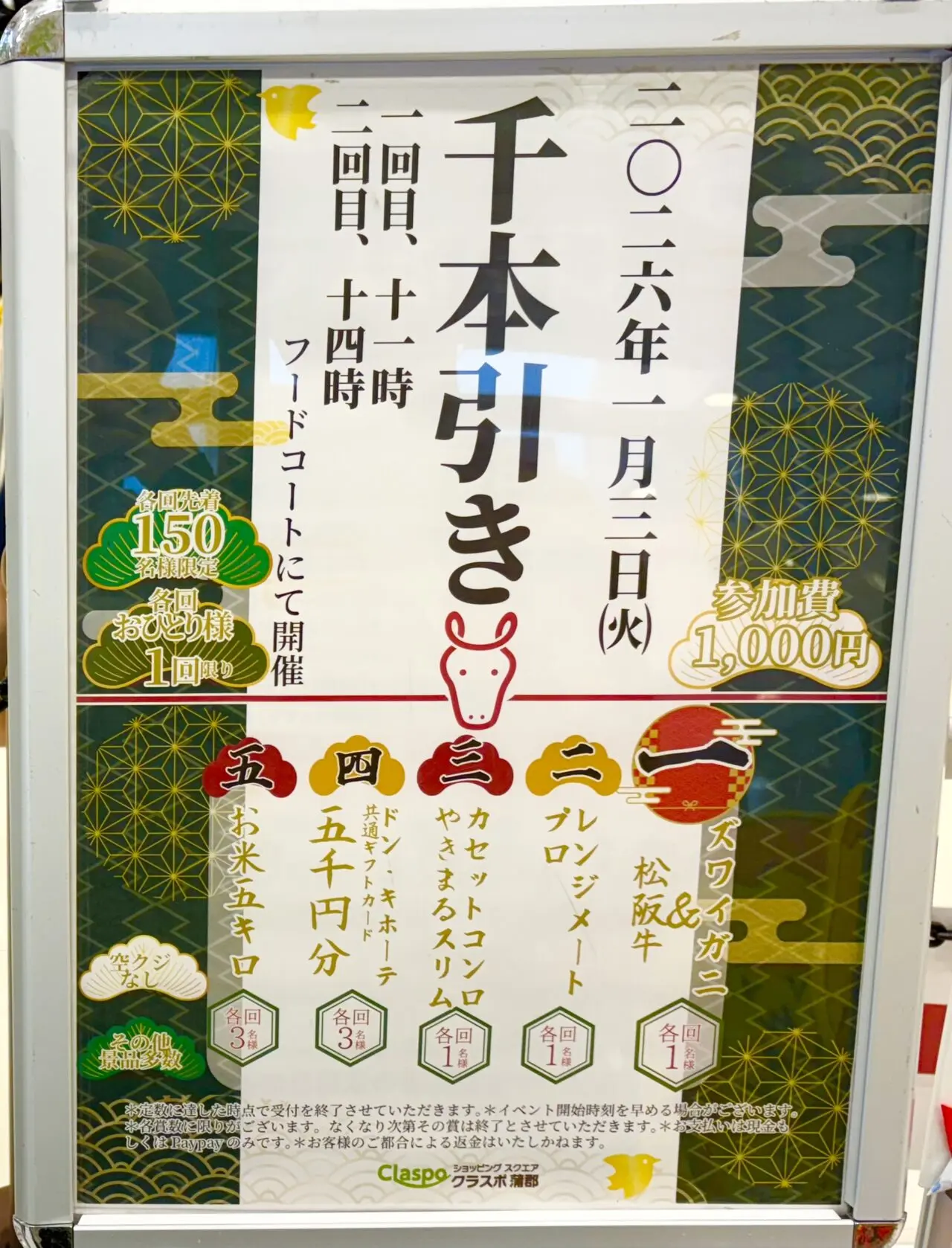 【蒲郡市】空くじなしは神!1月3日開催・クラスポ蒲郡の千本引き抽選会がアツい♪