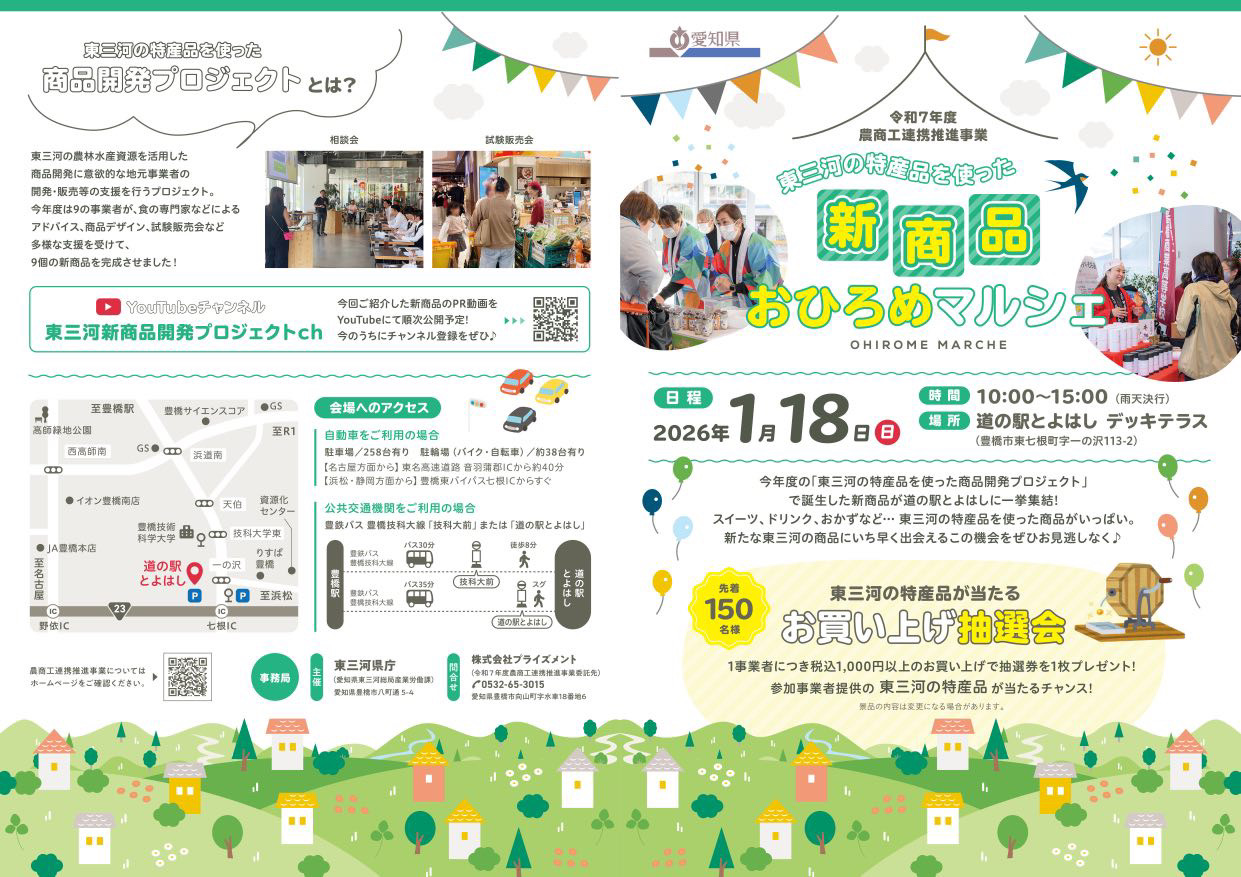 2026年1月18日(日)豊橋市の「道の駅とよはし」で新商品おひろめマルシェが開催されます。
