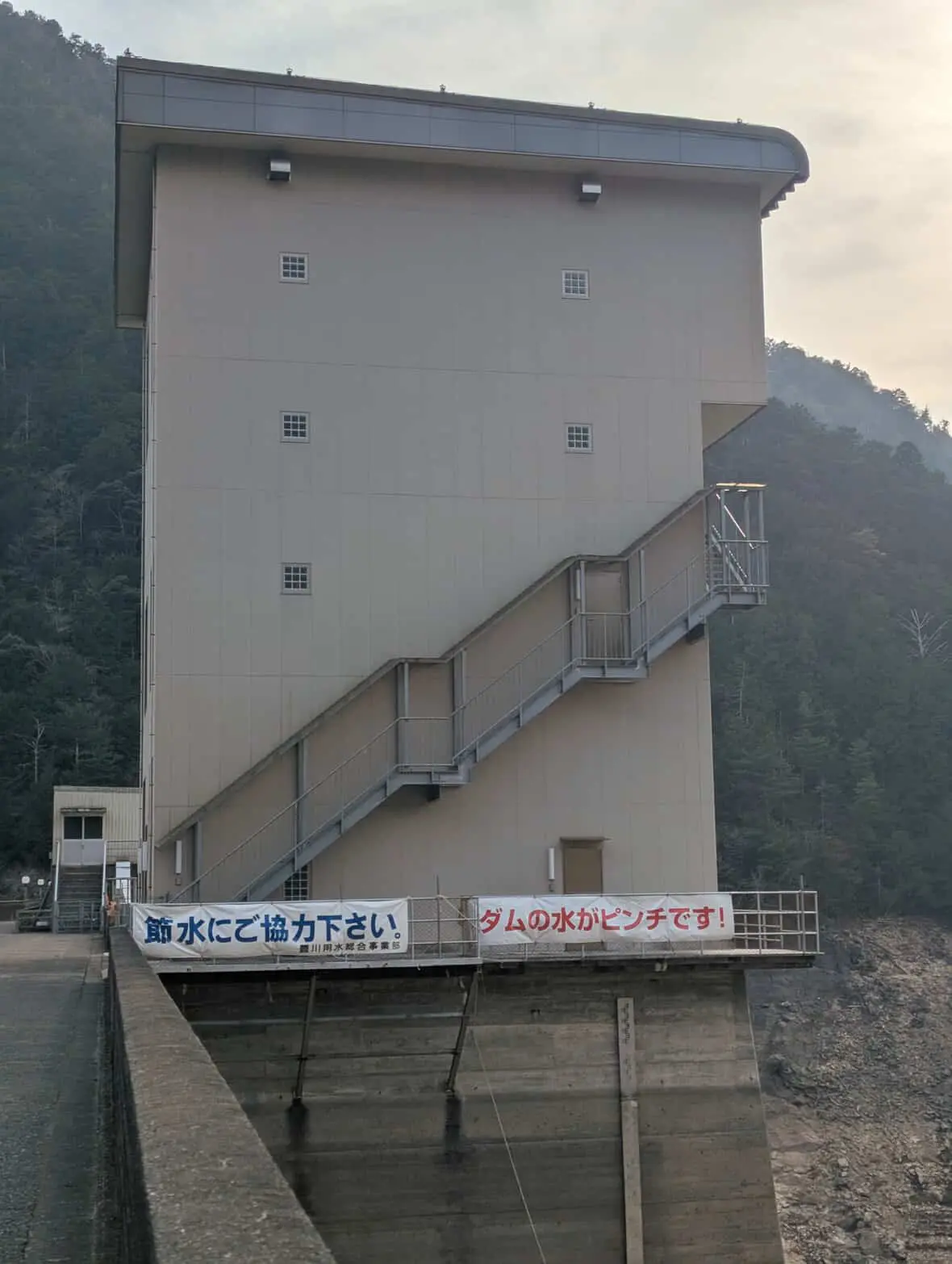 本来なら湖になってるはずの場所が、完全に地面むき出しになっており、ダムというより、巨大な空き地のようです