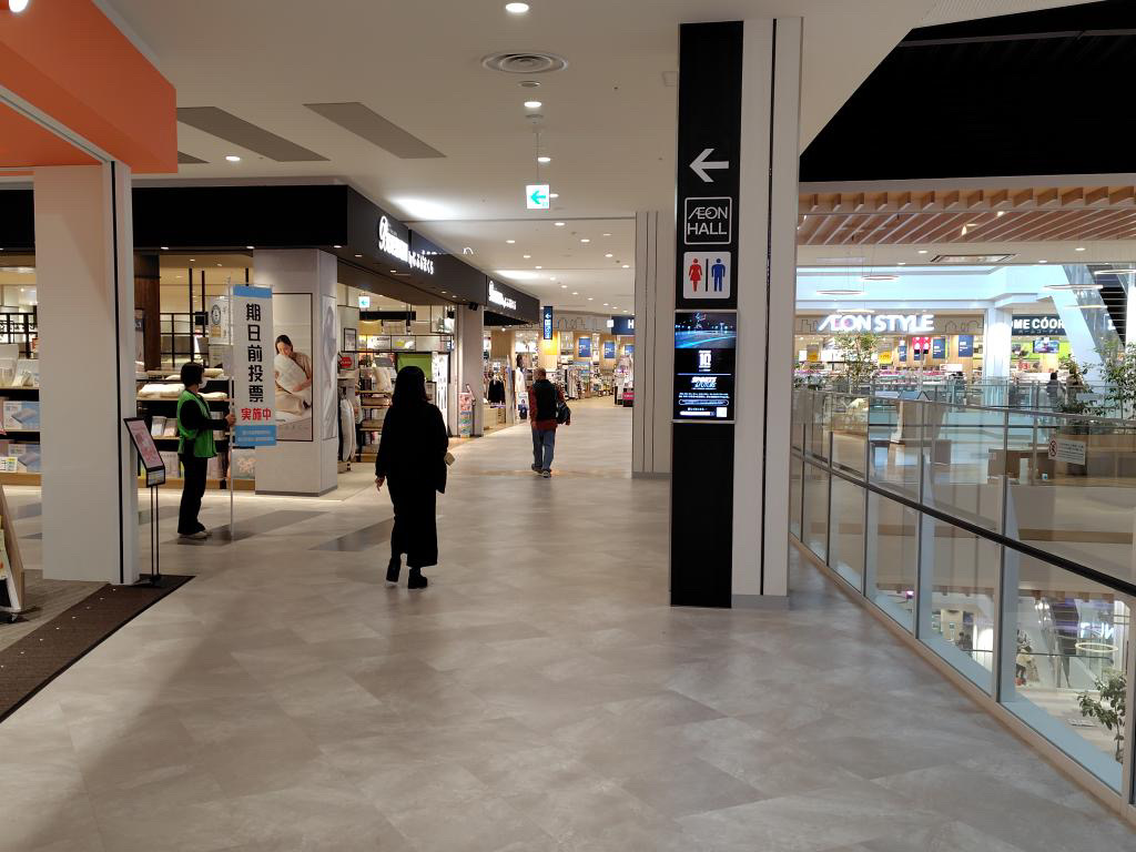 3階のイオンホールに向かう通路には「期日前投票実施中」ののぼりがしっかり掲げられてて、めちゃくちゃ分かりやすいです。