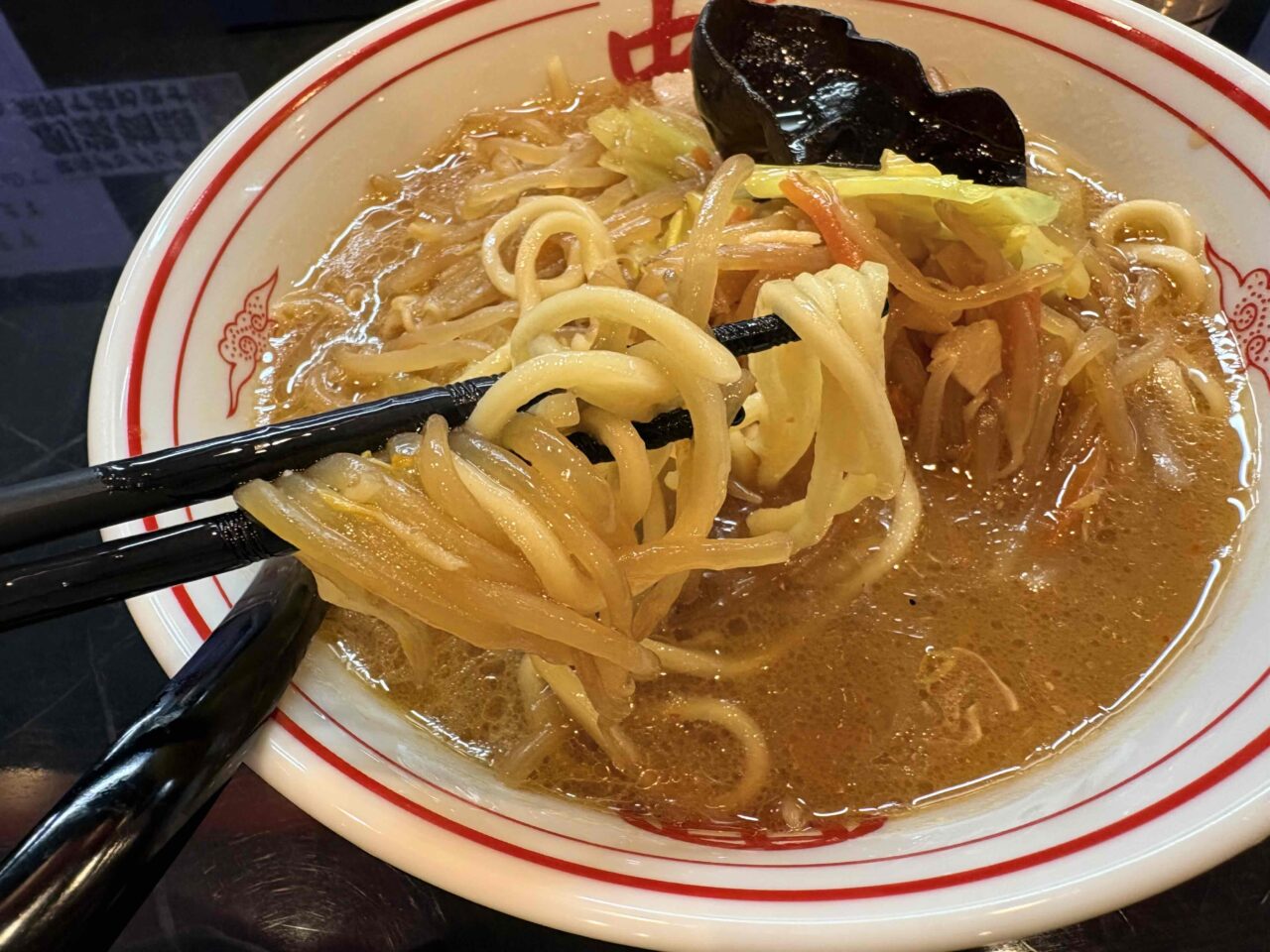 スープを一口。濃厚な味噌のコクがガツンと広がり、その後からじんわりと辛味が追いかけてくる。