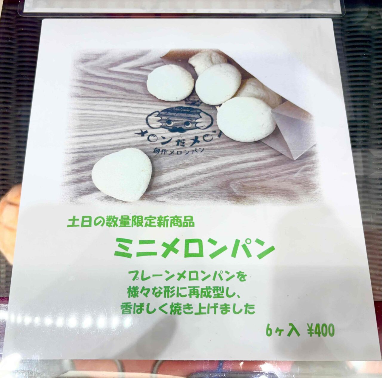 土日限定で登場するのが、色々な形が楽しめるミニメロンパン(6個400円)。