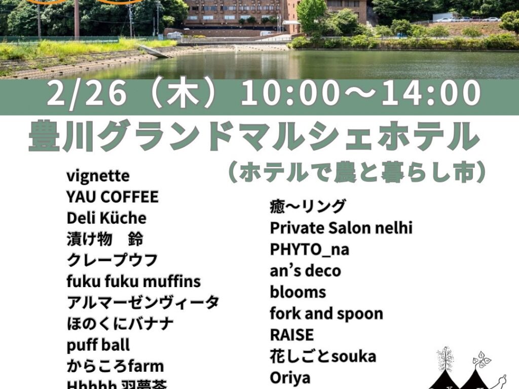 【豊川市】子どもが学校の間にちょっと息抜きマルシェ…2月26日に豊川グランドホテルで「農と暮らし市(ノークラ)」開催♪