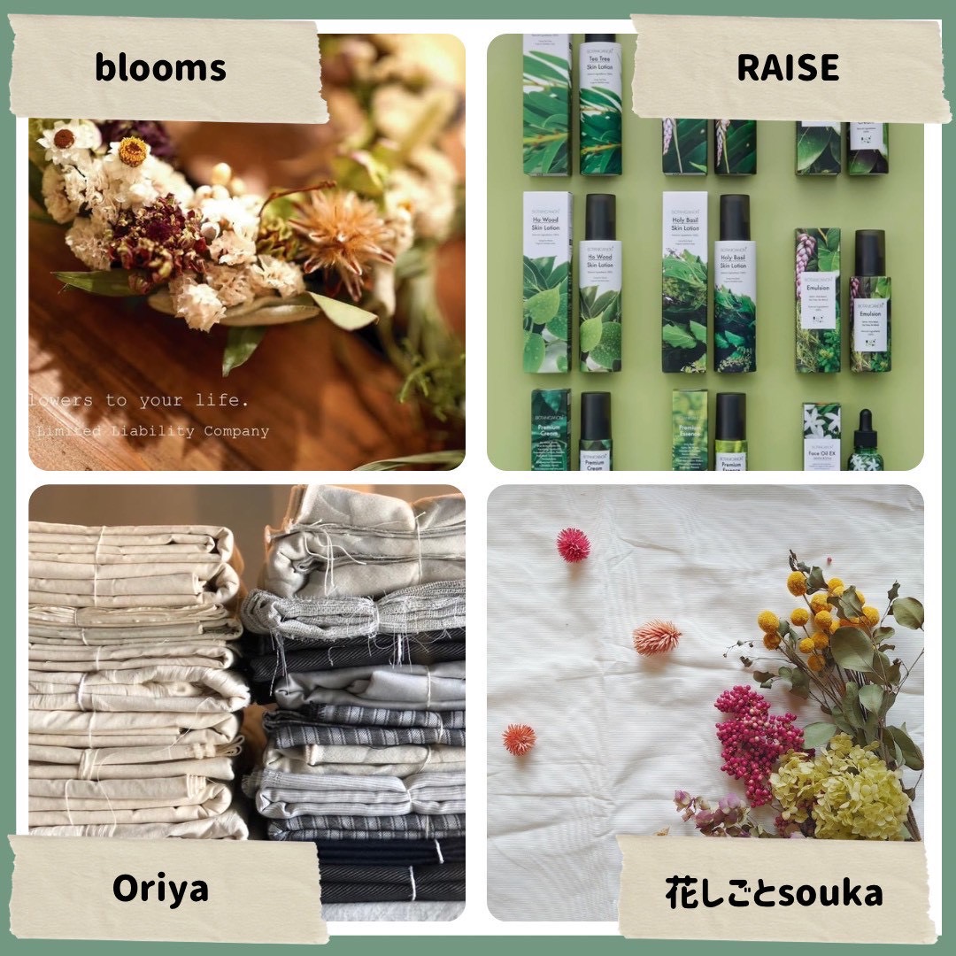 そして今回うれしいのは、暮らしを彩る雑貨も並ぶこと。布や糸、リボンのアイテム、ドライフラワーやお花の販売もあり、キッチンやリビングにちょっと飾りたくなるような出会いもありそう。