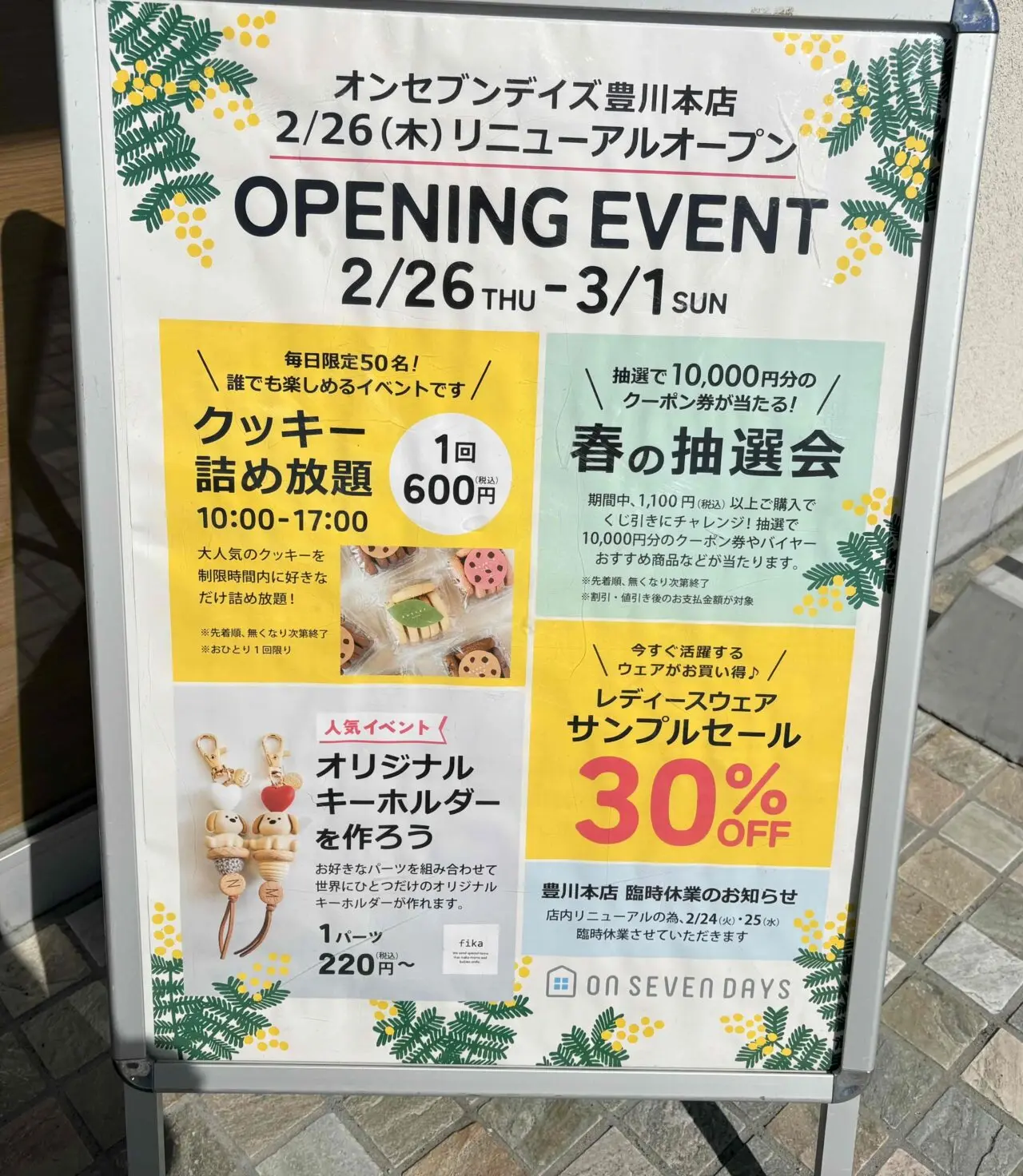 2026年2月26日にリニューアルオープンしたオンセブンデイズ豊川本店。