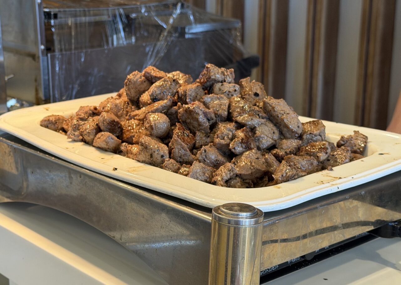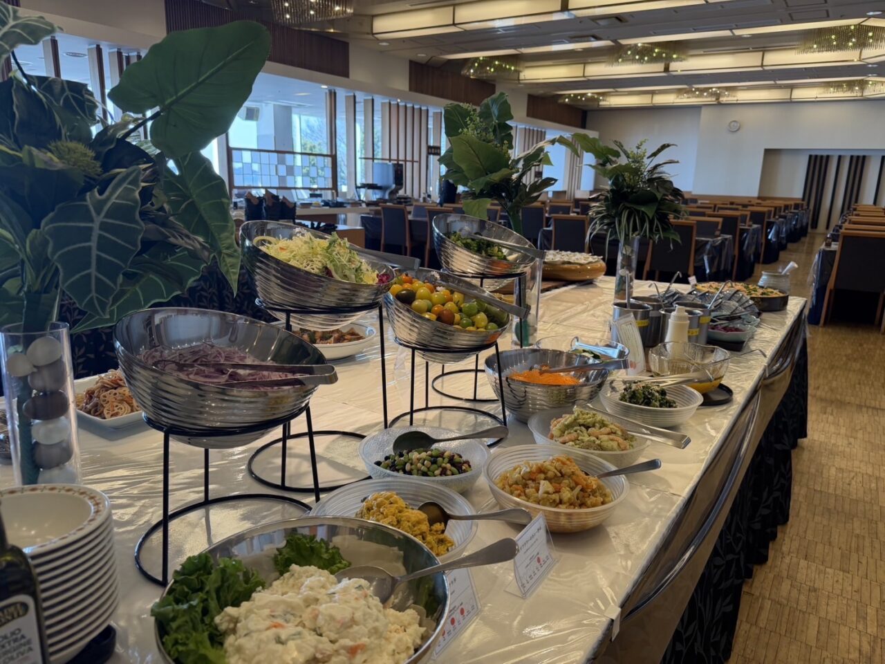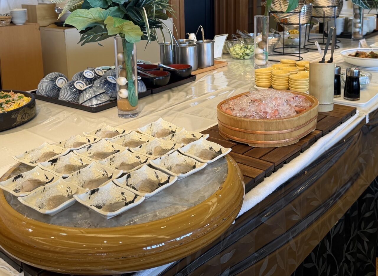 出来たての料理の香りが広がり、新鮮なお刺身や香ばしく焼き上げられたステーキなど豪華なメニューに思わず目移り。
