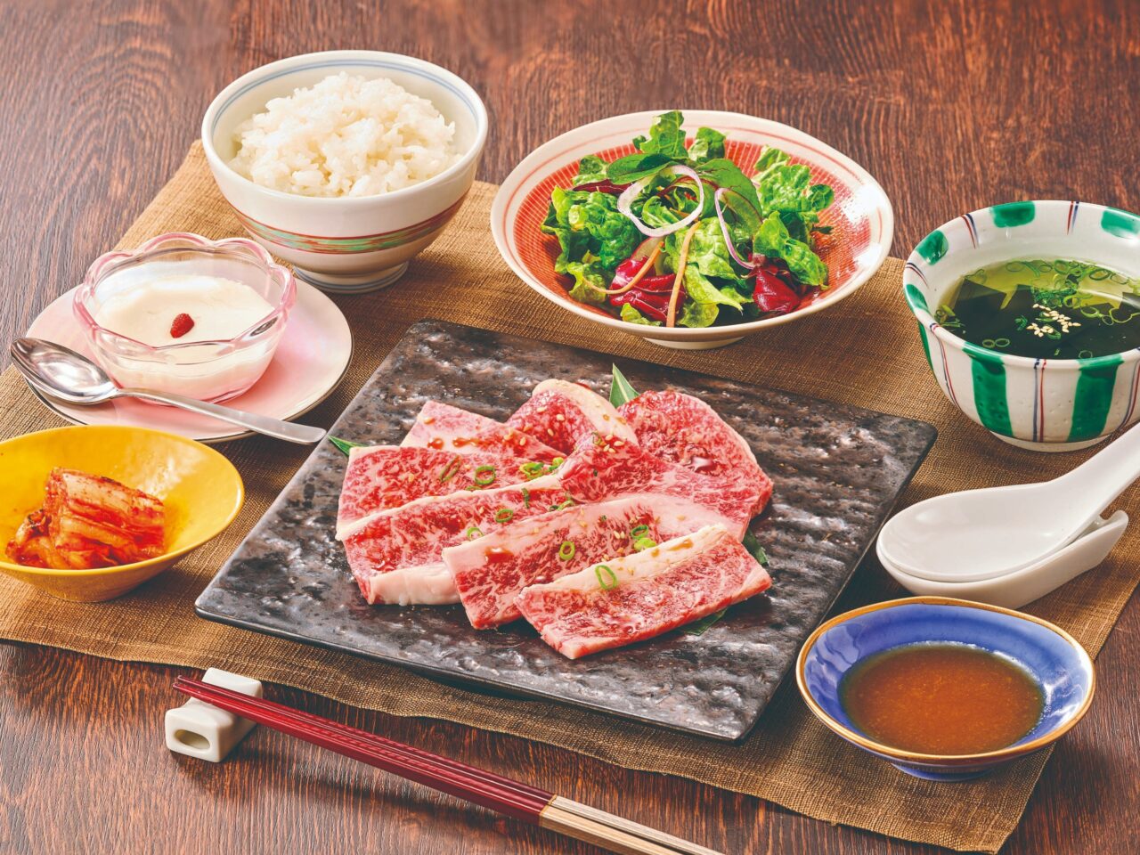 松阪牛の旨みをしっかり感じられるカルビに、サラダ・ライス・キムチ・スープ・デザートまで付いた大満足の内容です。