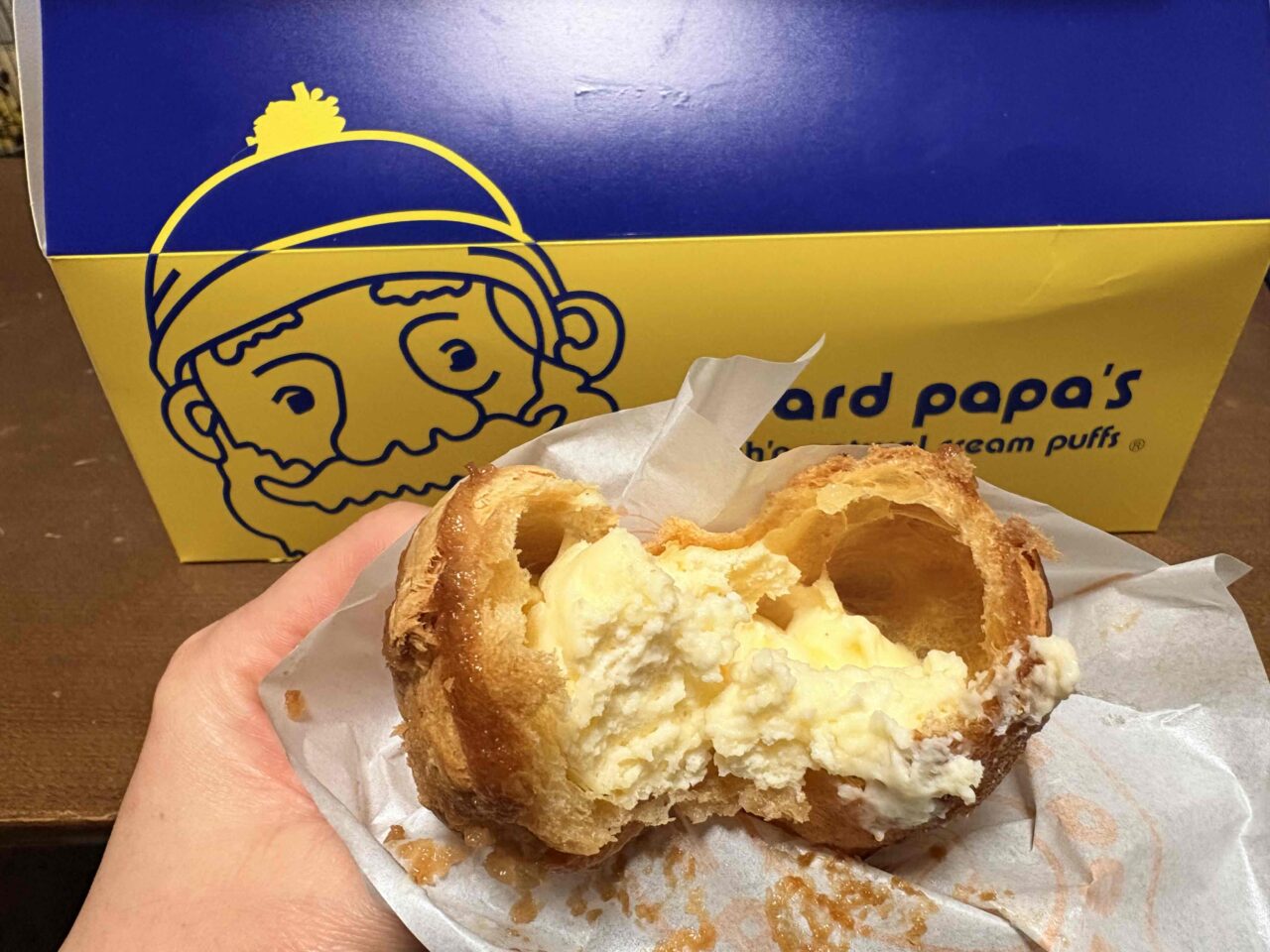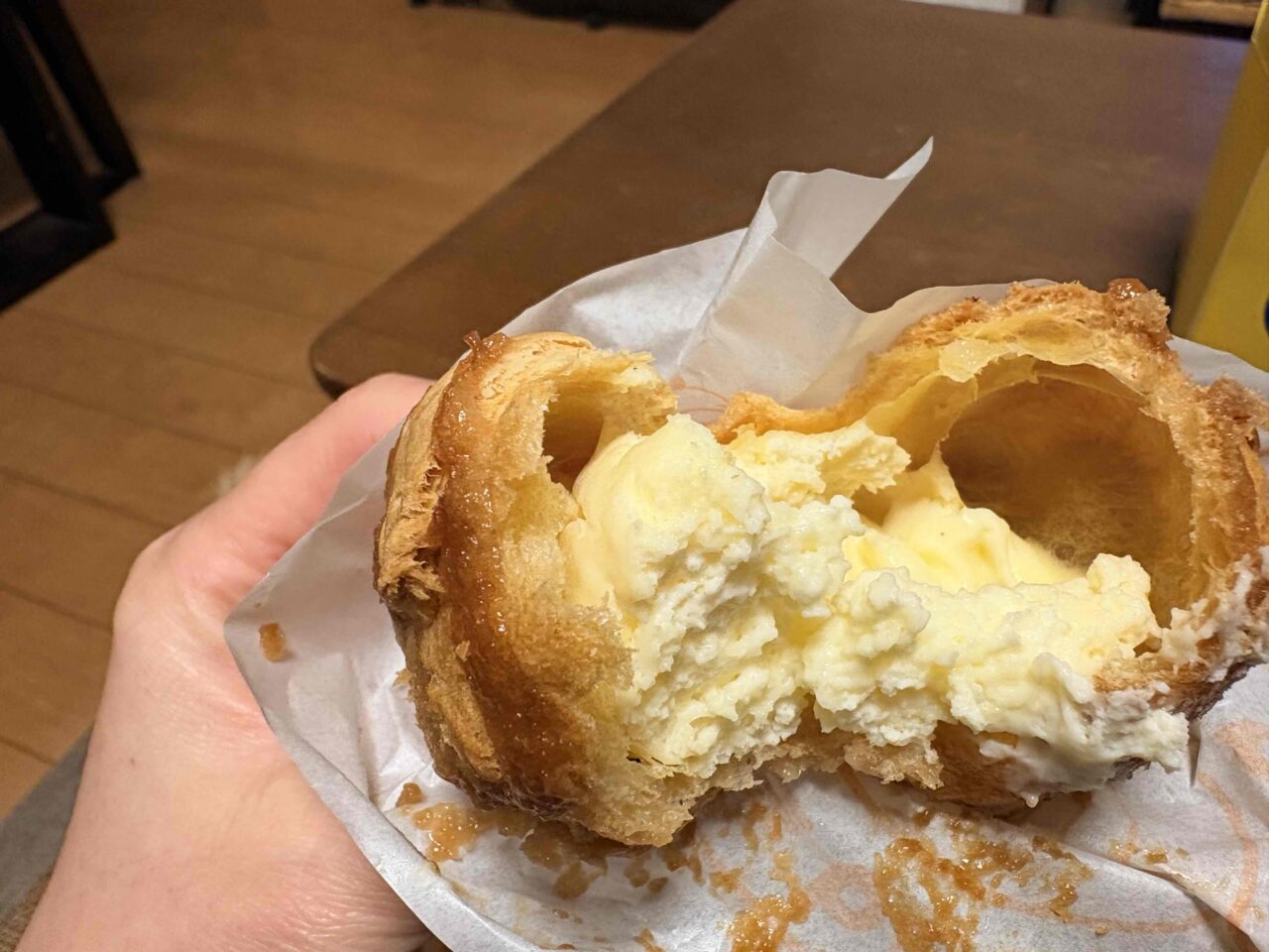 ハニーバターがしみ込んだ香ばしいシュー生地と、コクのあるカスタードクリームの組み合わせは、間違いないおいしさです。