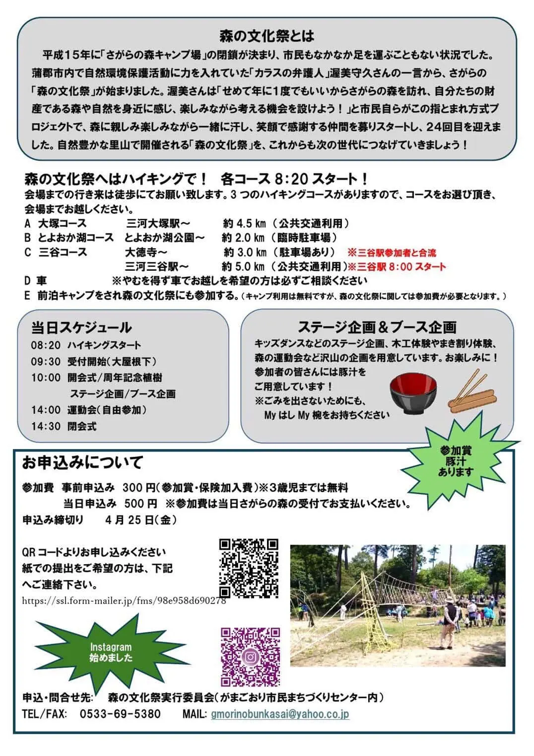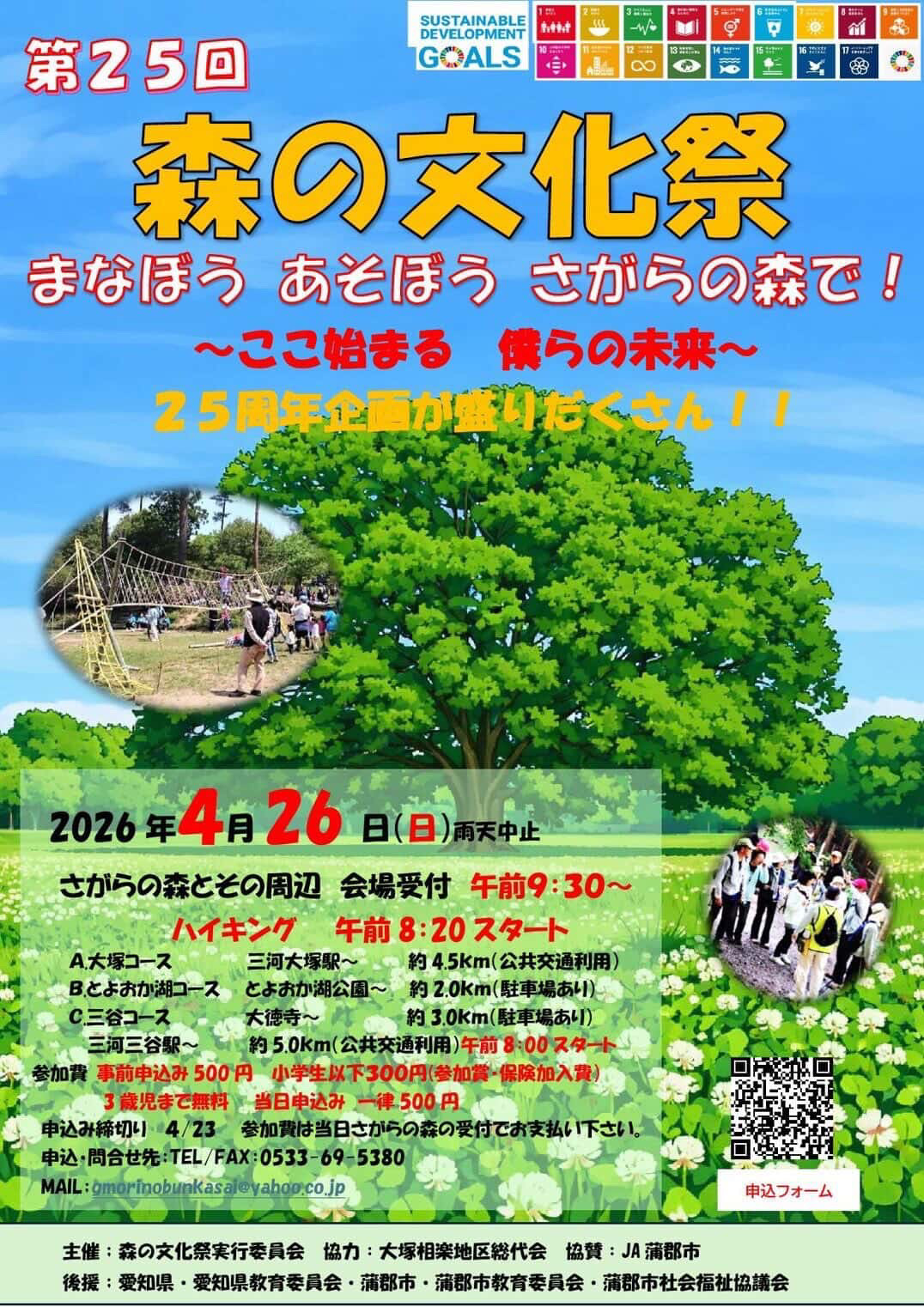 2026年4月26日(日)蒲郡市の「さがらの森」で第25回「森の文化祭」が開催されます。
