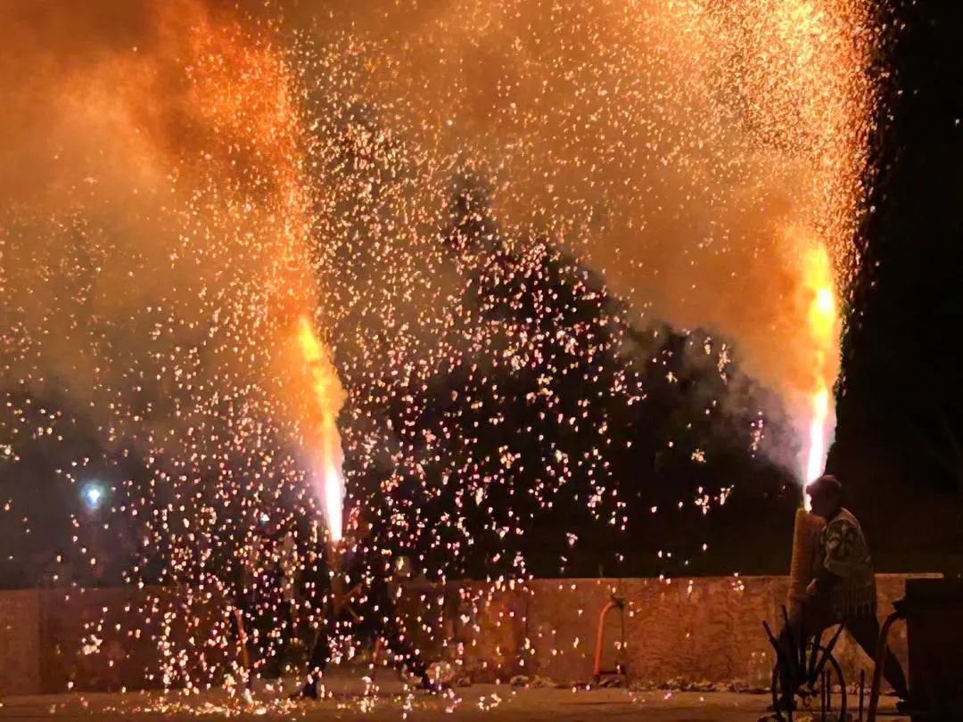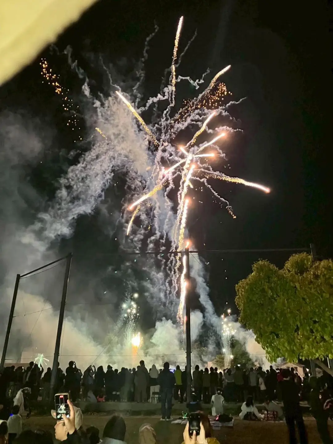 かなり近い距離で見られる迫力満点の花火に加え、火の粉が舞う演出もあり見応え抜群。