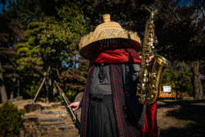 名古屋観光特使としても知られ、街角でサックスを奏でる“謎の侍”として話題の存在です。