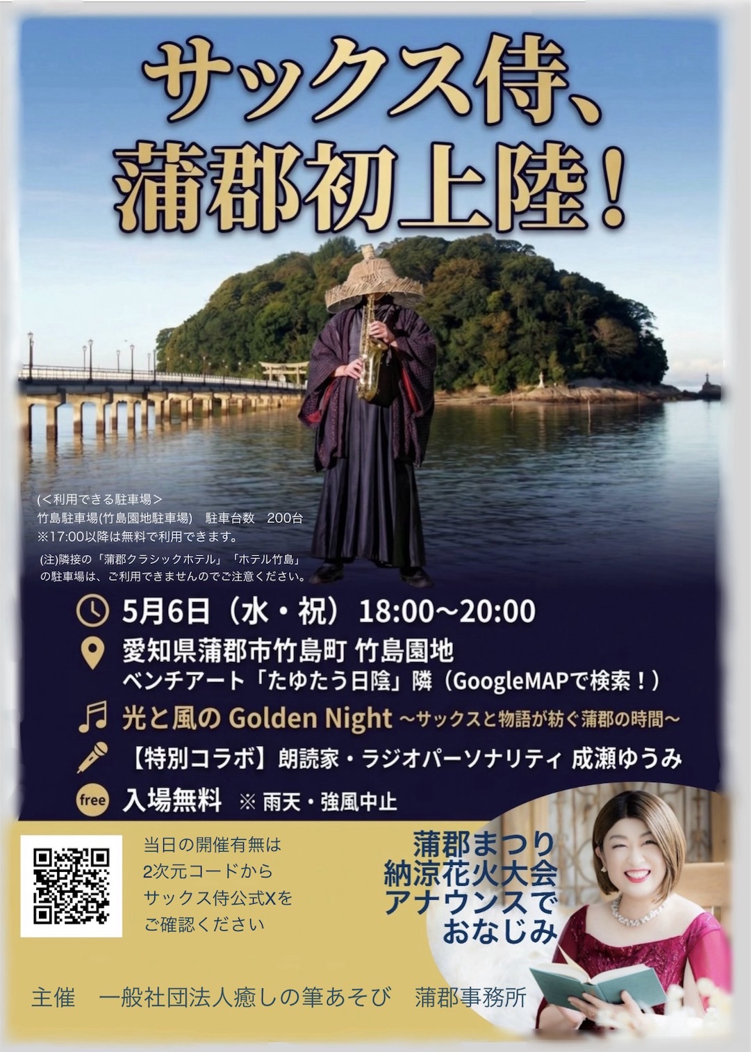『光と風の Golden Night ~サックスと物語が紡ぐ蒲郡の時間~』が行われます。